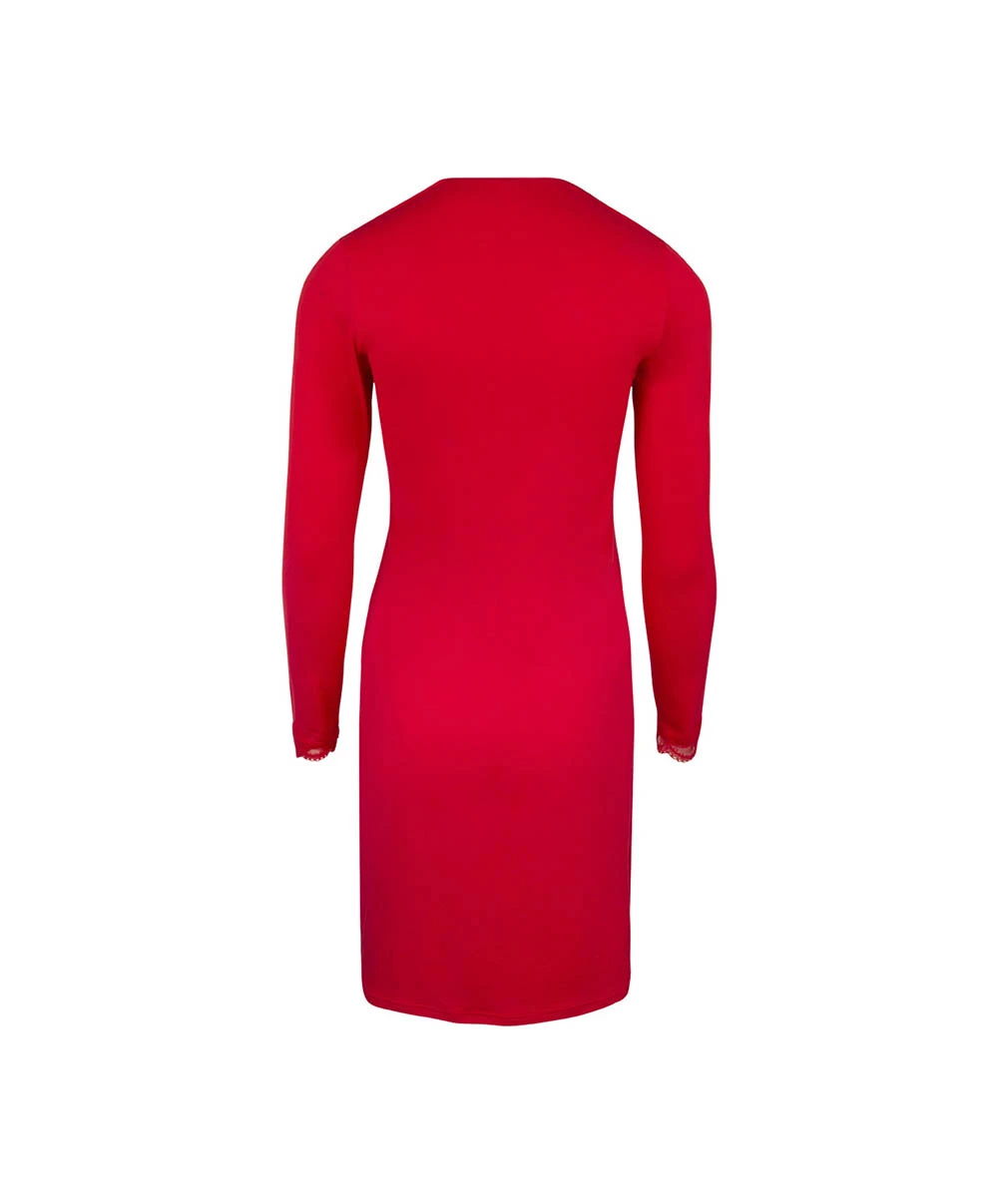 Chemise de nuit manches longues col V collection homewear Simply Perfect en coloris rouge capucine de chez Antigel par Lise Charmel.