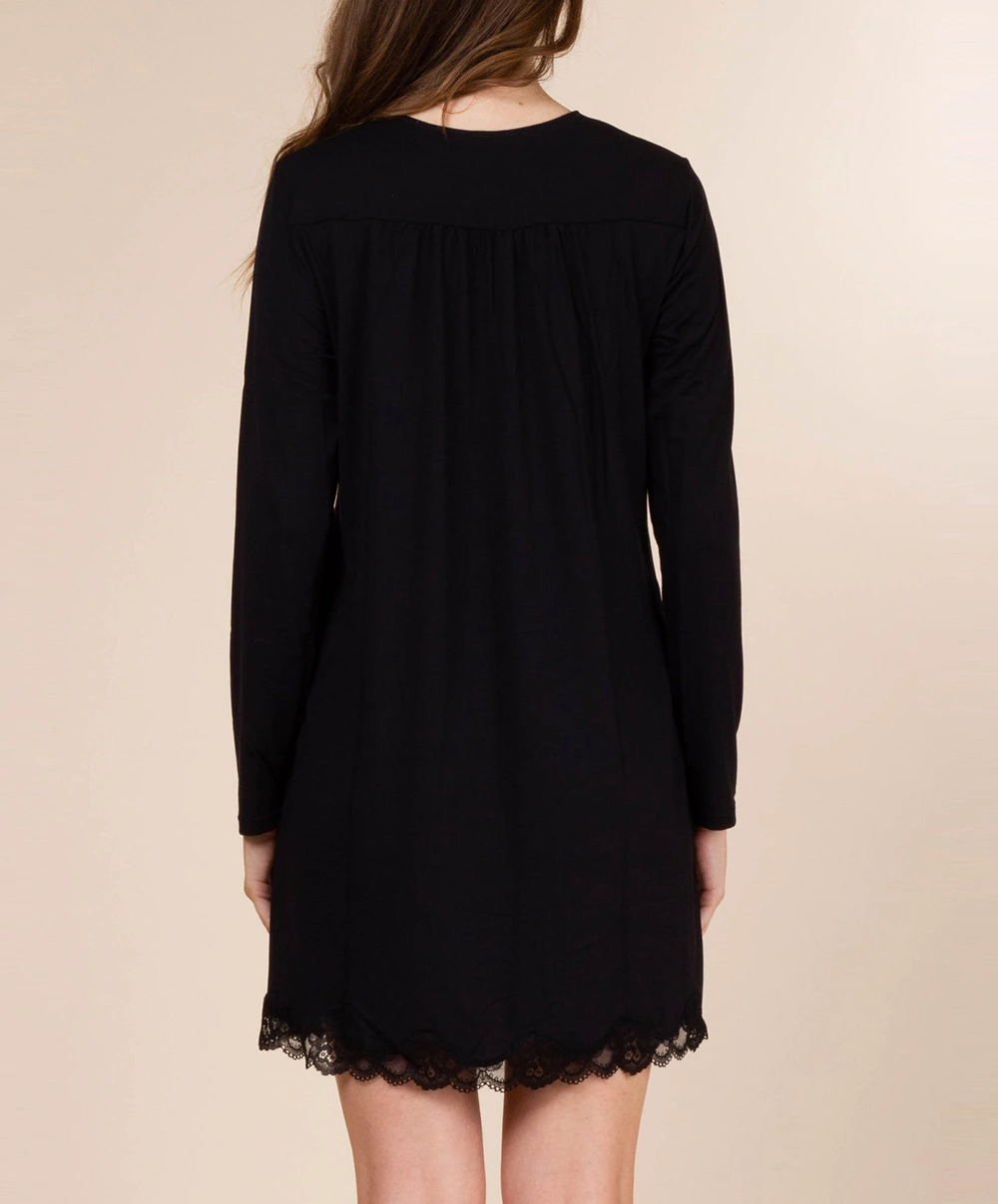 -Vous allez adorer les empiècements de dentelle noire ton-sur ton pour jouer le total look black au décolleté et au bas de la pièce de cette chemise de nuit essentielle qui vous confèreront une élégance toute particulière.