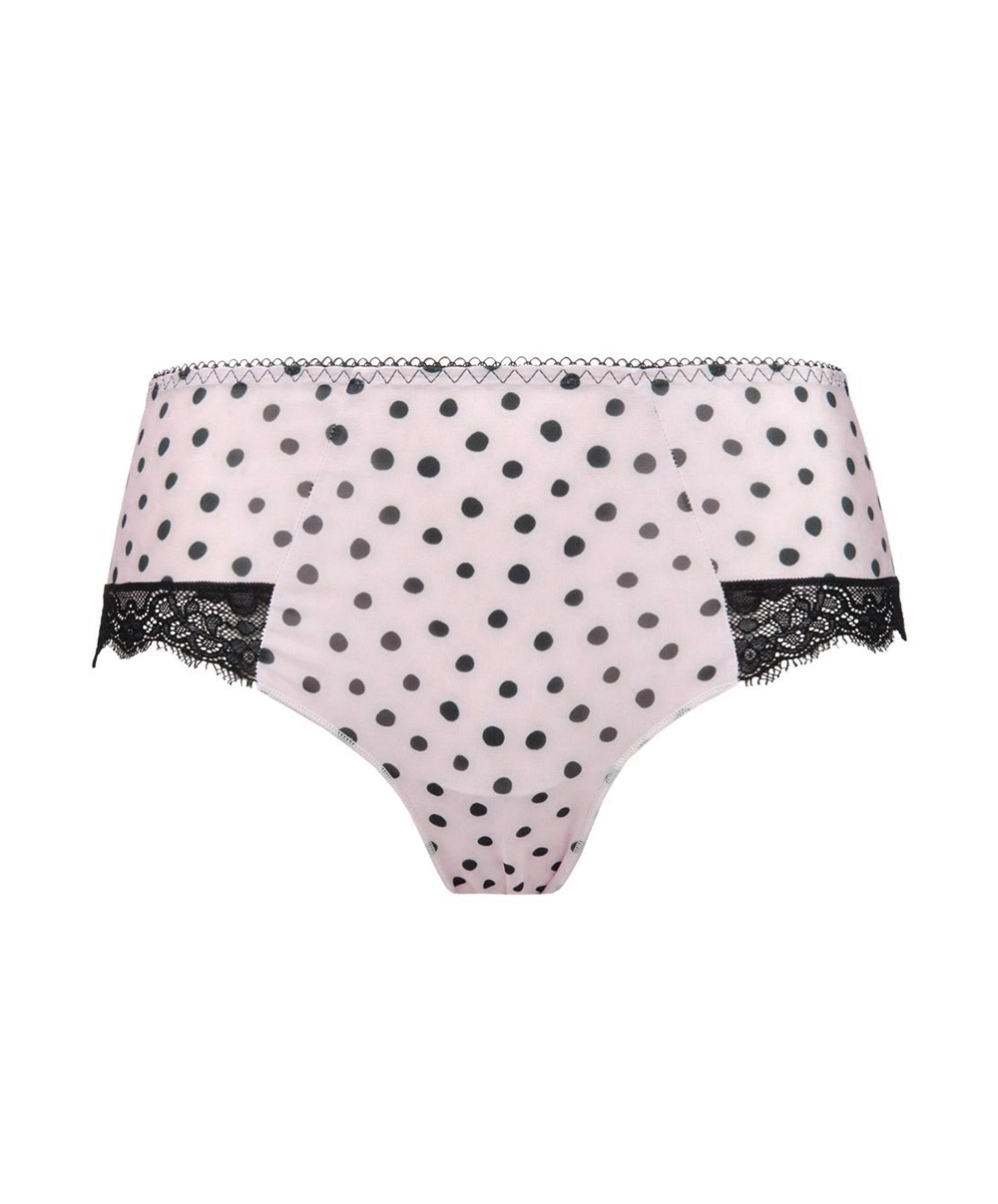 -Sous-vêtement au motif très élégant à pois noirs sur un fond rose poudré plein de romantisme et d’élégance pour une silhouette à la fois vintage, chic et glamour façon pin-up… Séduction garantie !