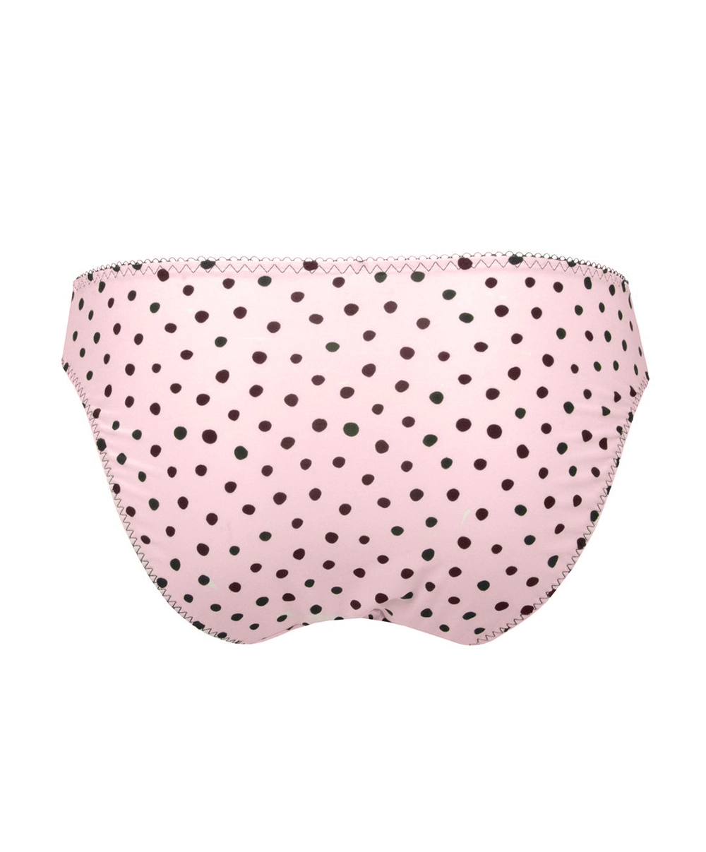 Coloris : Pois Noir PN (12041) : un imprimé à pois noirs très classe sur un fond rose poudré pour un romantisme déclaré.