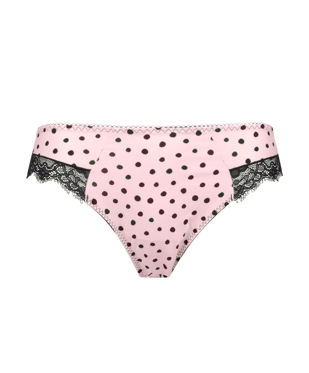 -Sous-vêtement au motif très élégant à pois noirs sur un fond rose poudré plein de romantisme et d’élégance pour une silhouette à la fois vintage, chic et glamour façon pin-up… Séduction garantie !