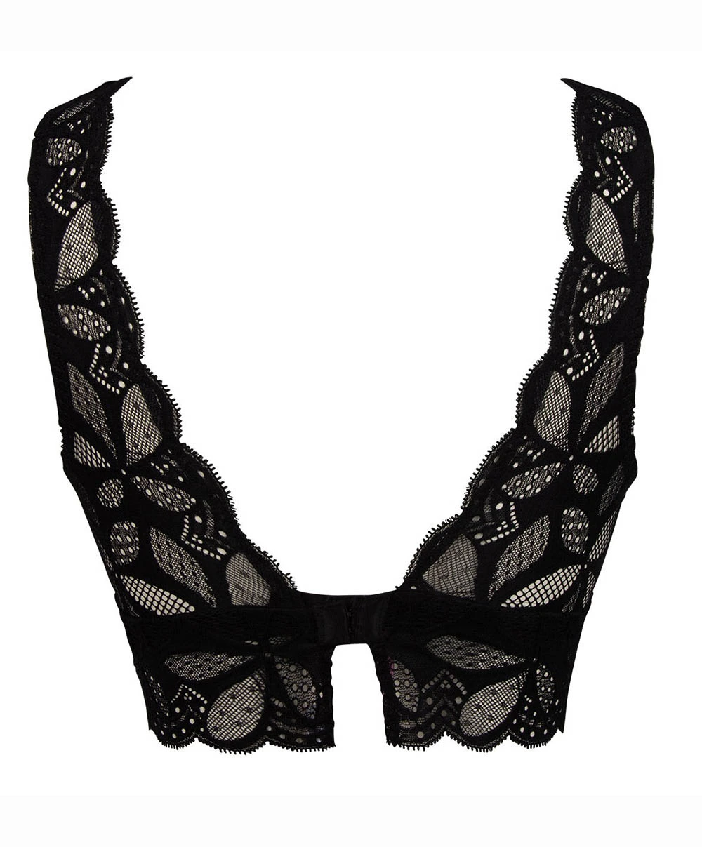 -Cet article de lingerie sexy offre une forme « foulard » et un décolleté plongeant très sexy avec ses bonnets triangulaires ce qui en fait une pièce tendance avec un petit côté rétro chic de lingerie vintage. Cette brassière se rapprochant du style « bralette » (pour utiliser un néologisme venu de l’Anglais) possède une basque plutôt large toute en dentelle et un décolleté plongeant séducteur et vous permettra de vous libérer de la contrainte des armatures. Celles qui n’ont pas froid au yeux la porteront seule ou la suggèreront de manière très sexy sous un chemisier ou une veste par exemple. Sa coupe peut aussi s’apparenter à un crop top en dentelle.