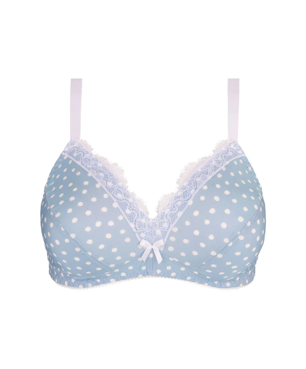 Soutien-gorge sans armatures grande taille collection Pois Sixties de chez Antigel par Lise Charmel, coloris bleu sterling.