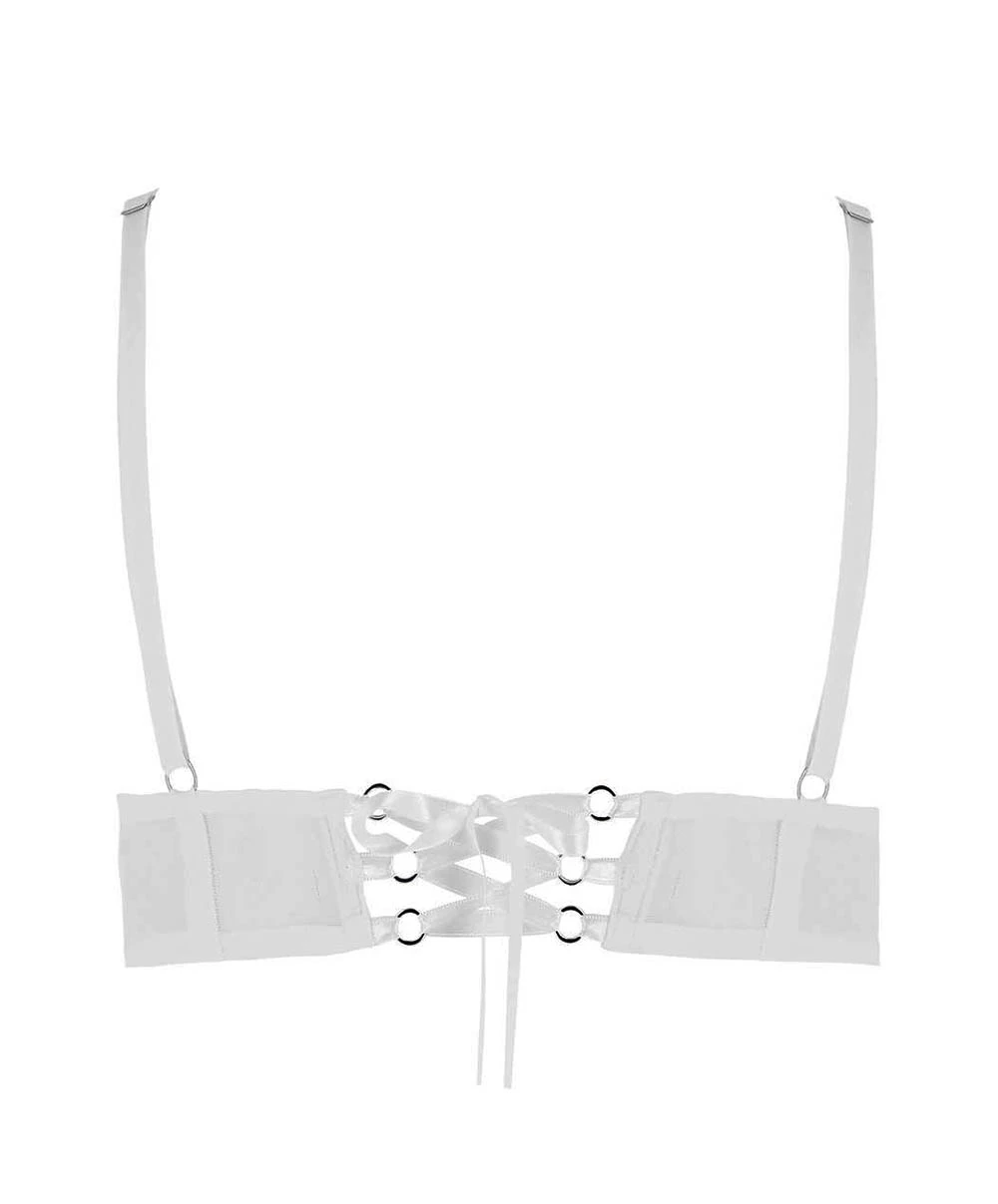 Une pièce de lingerie raffinée en tulle stretch et dentelle jacquard qui s’applique parfaitement sur la peau pour une totale mise en beauté de la silhouette. Véritablement érotique, ce soutien-gorge en dentelle au décolleté horizontal ravageur se pare de bonnets en mousse afin de bien maintenir la poitrine et de lui offrir un beau galbe. On adore le laçage sexy au dos avec son ruban de satin et les anneaux dorés mettant en valeur les courbes naturelles de votre silhouette. Mais ce qui nous plait le plus c’est l’ouverture à l’avant par bouton pression qui fera un effet fou lorsque vous vous déshabillerai. Ce soutien-gorge antinéa de lise charmel est également le parfait dessous pour les futures mariées.