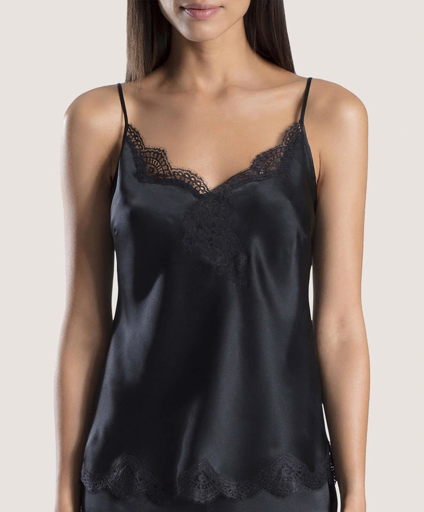 -Ce dessous chic présente de superbes empiècements de dentelle Leavers au niveau du décolleté ainsi qu’au bas de la pièce, ce qui lui confère une élégance et une sophistication toute particulières.