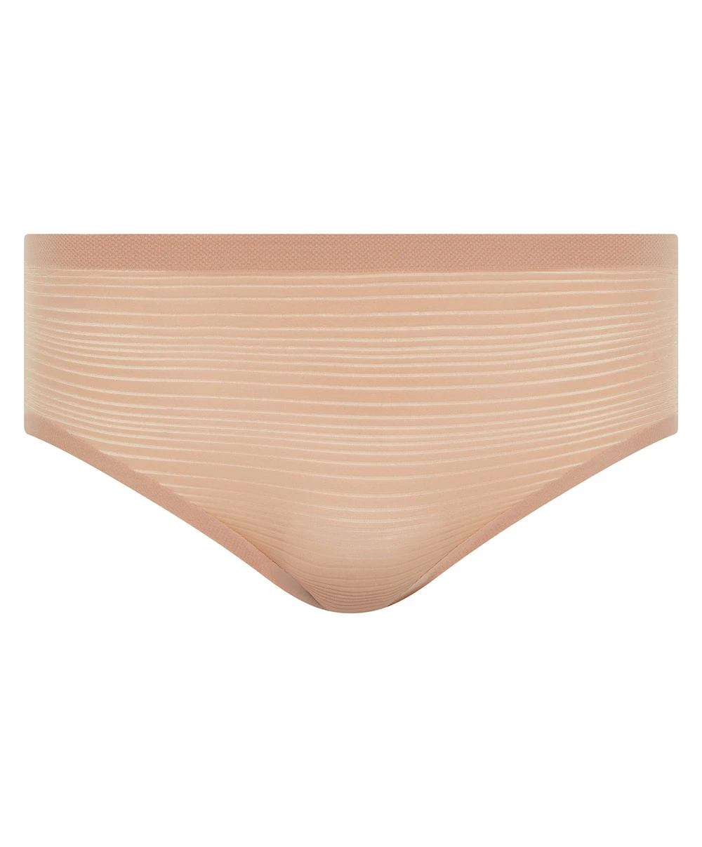Shorty à rayures texturées collection Soft Stretch Stripes coloris sirocco (=peau) de chez Chantelle Paris.