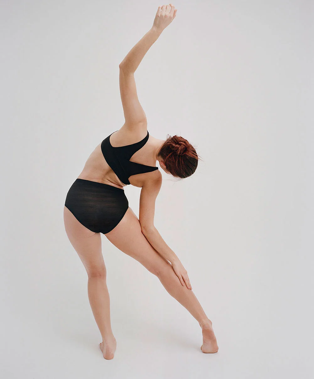 Culotte haute à rayures texturées collection Soft Stretch Stripes coloris noir de chez Chantelle Paris.