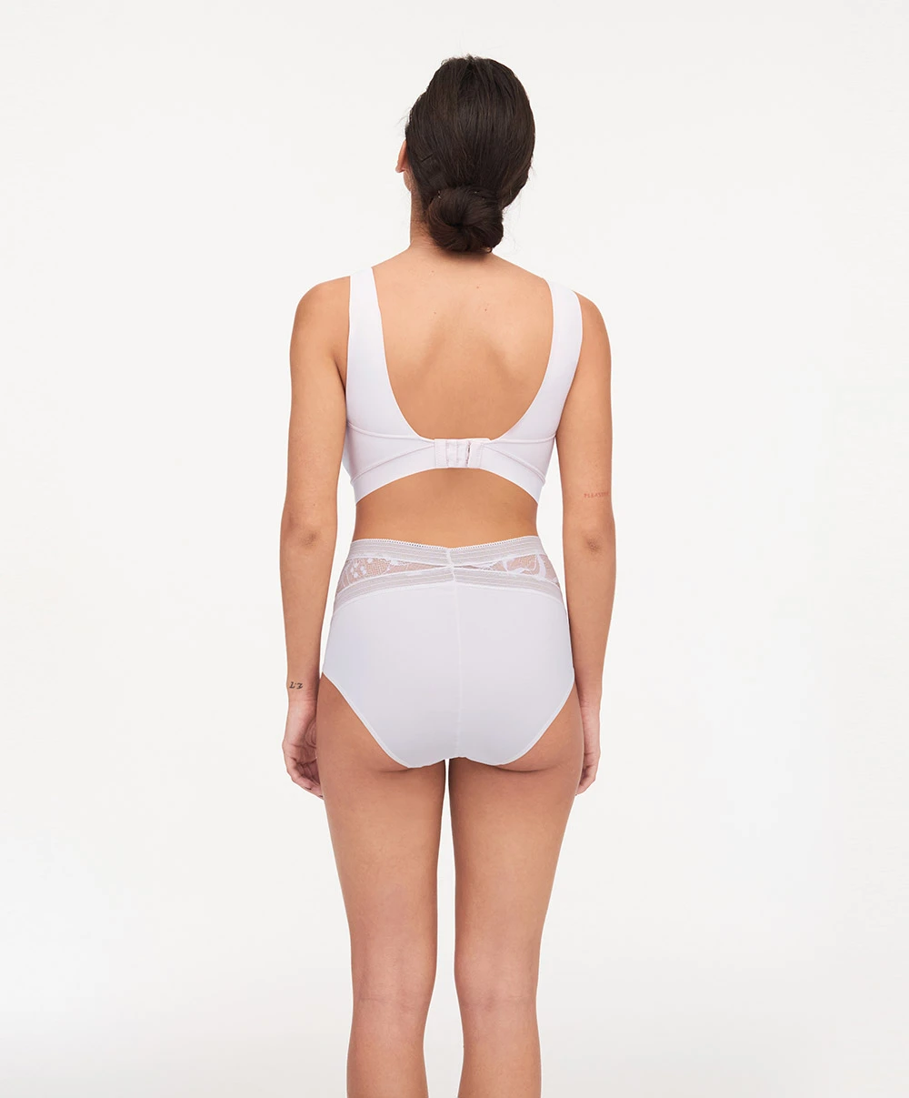 Culotte haute de la marque de lingerie Chantelle, collection True Lace, coloris milk (=nacre).