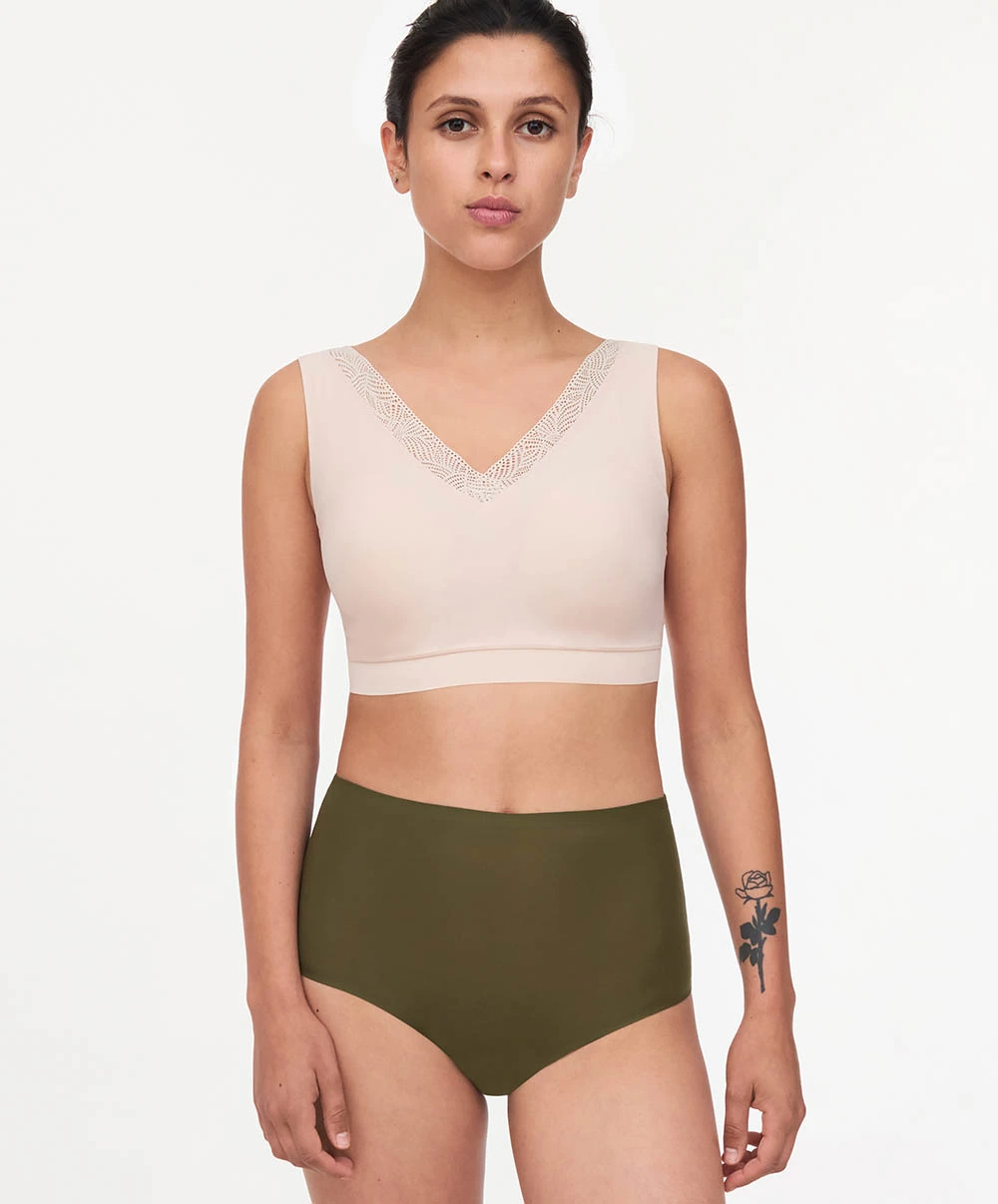 Culotte taille haute kaki invisible collection essentielle Soft Stretch de chez Chantelle.