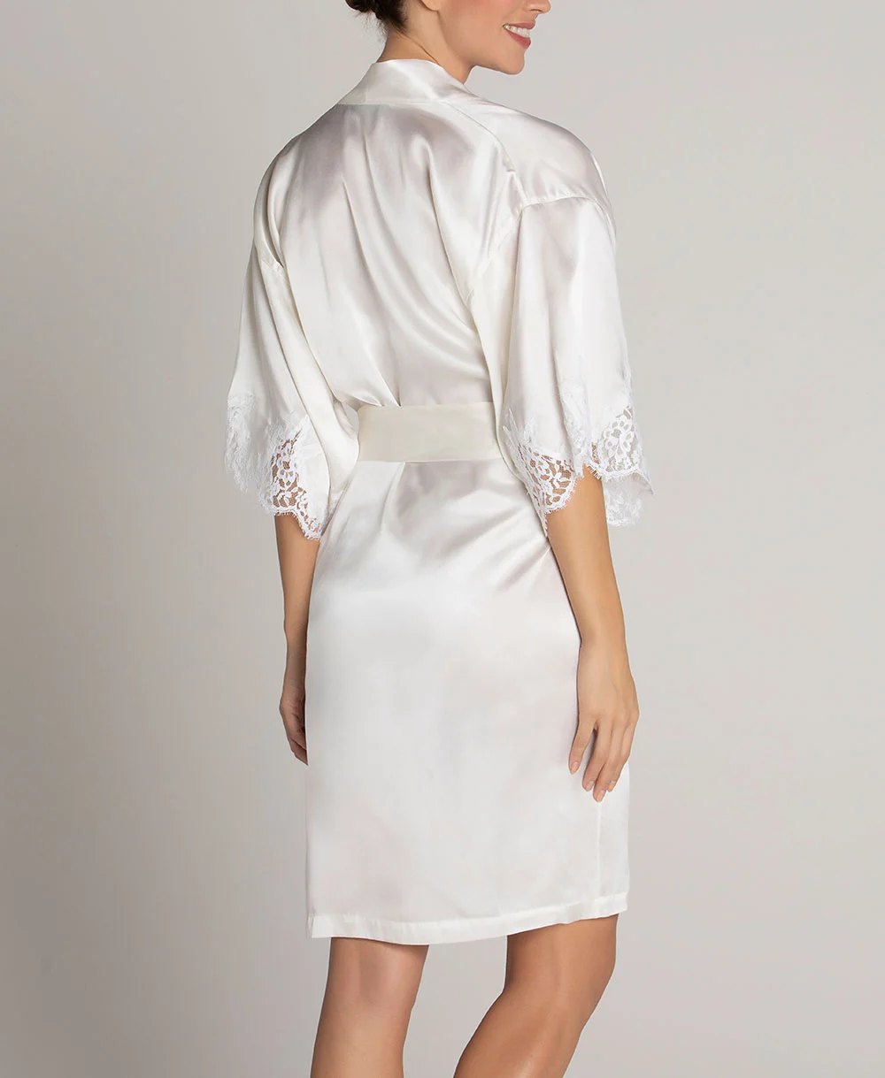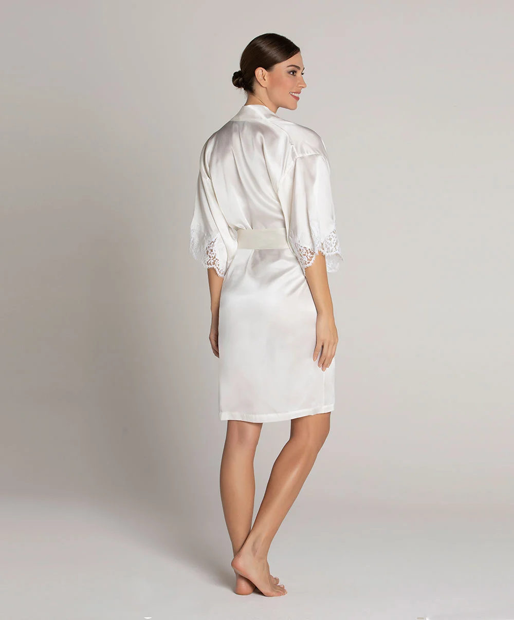 Déshabillé court en soie Lise Charmel collection Splendeur Soie coloris écru nacre (=ivoire).