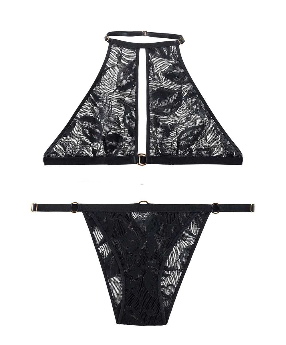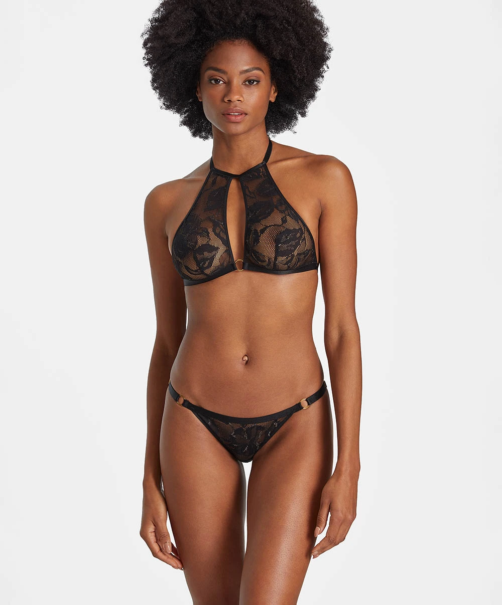 On retrouve un soutien-gorge brassière sans armatures et une culotte mini-coeur dans ce coffret.