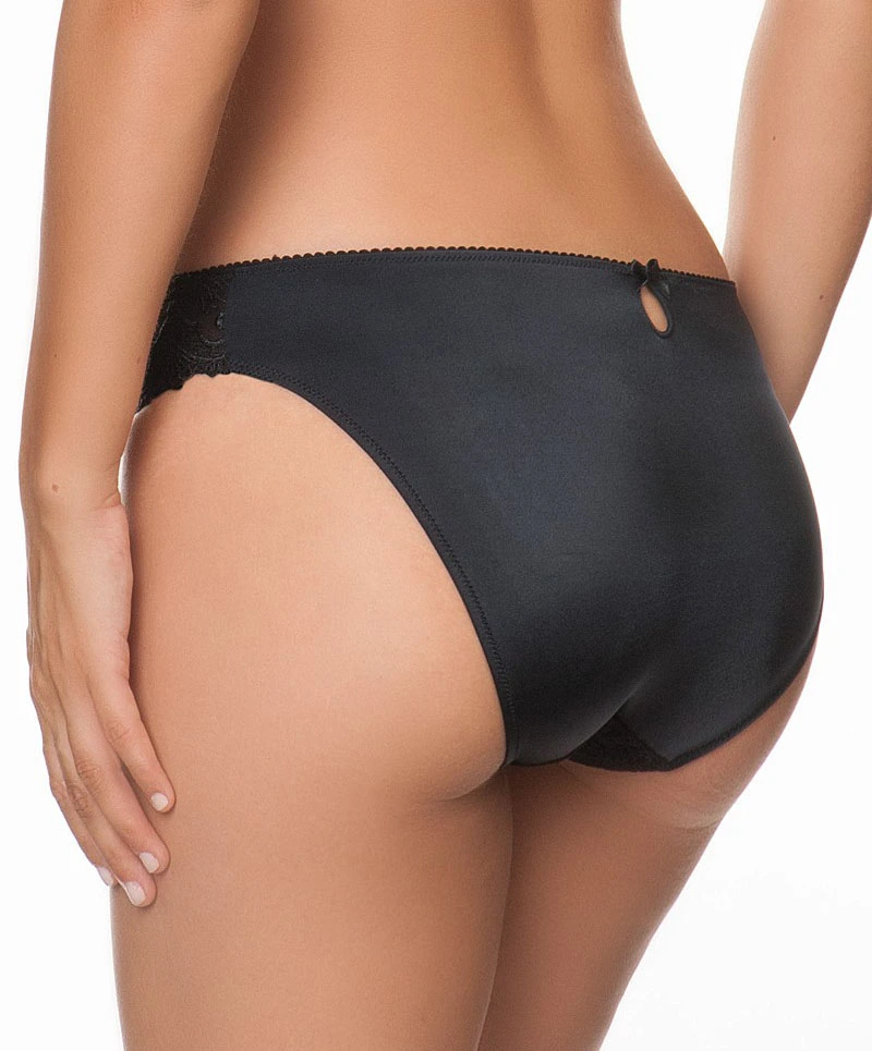 Slip Cristal de Roche par Éprise de Lise Charmel. Cette culotte noire est faite de maille tonique noire opaque au dos pour vous apporter la couvrance et la rassurance dont vous avez besoin. Devant, vous retrouverez un galon de dentelle Leavers doublé tulle à l’intérieur et des broderies brillantes inspirées de la cristallerie d’art qui donnent à ce slip Éprise un côté très précieux. Les fintions de cette culotte luxe vous siéront à merveille et vous ne pourrez bientôt plus vous passer de cette création ! Petit plus : ce superbe bas de lingerie est également parfaitement adapté aux femmes les plus voluptueuses avec ses déclinaisons allant jusqu’aux grandes tailles.