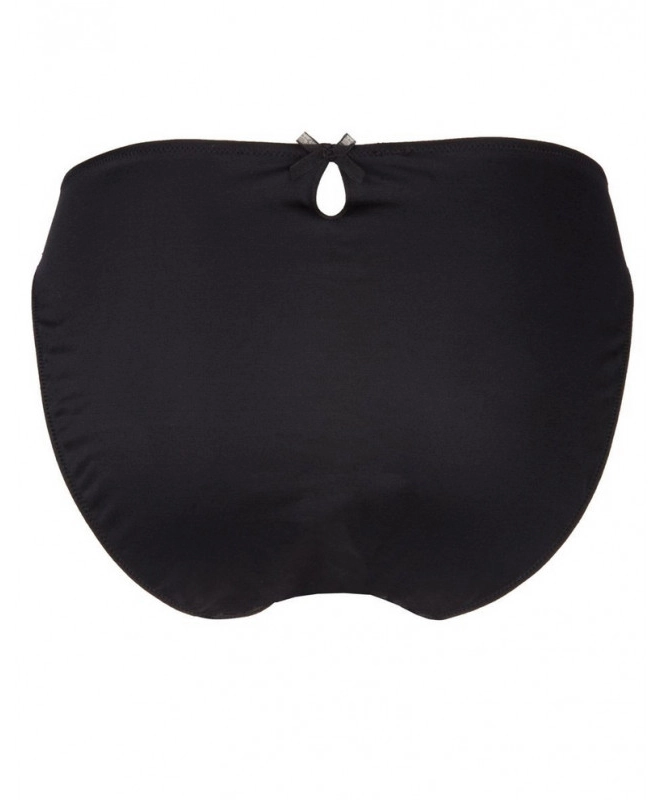 Slip grande taille par Éprise de Lise Charmel collection Acanthe Guipure coloris Arty Noir. Cette culotte grande taille en maille lisse et opaque au dos arbore un magnifique tulle noir ajouré aux broderies représentant des feuilles d’acanthe spectaculaires. Son dos à la coupe emboitante est conçu en maille opaque soyeuse avec un petit noeud satiné surmontant une ouverture en forme de goutte, pour vous apporter toute la rassurance et le confort que vous recherchez. Ce superbe bas de lingerie est également parfaitement adapté aux femmes les plus voluptueuses avec ses déclinaisons allant jusqu’aux grandes tailles. Pour votre plus grand confort, le fond de ce slip est doublé 100% coton.