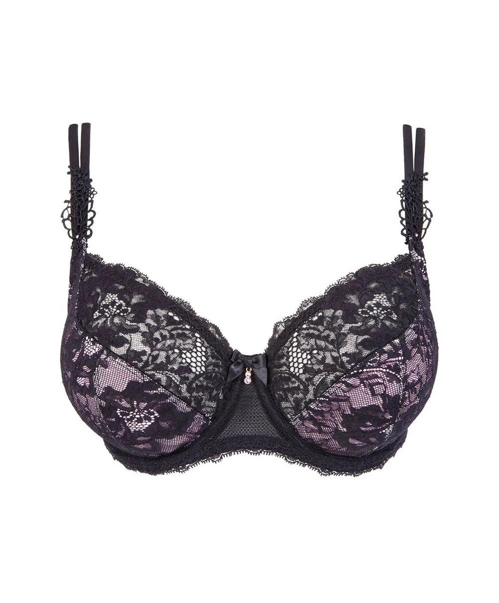 Soutien-gorge corbeille fitting par Éprise de Lise Charmel collection Dentelle Lotus coloris Noir Lilas.