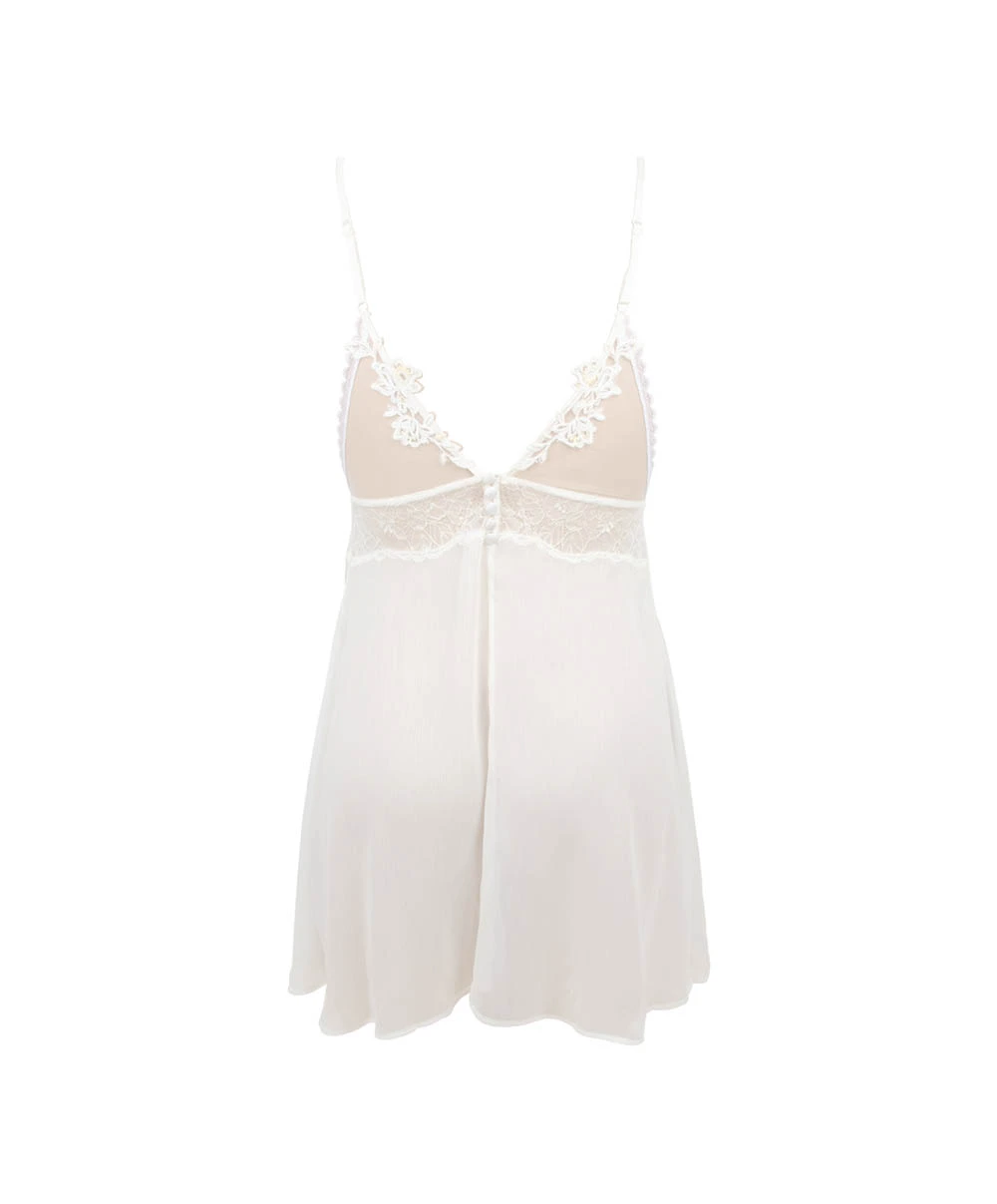 Envie d’une tenue séduction ? Cette nuisette lise charmel en dentelle et voile plissé légèrement évasée sur le bas est un plaisir à porter en toutes circonstances. Longueur mi cuisses.