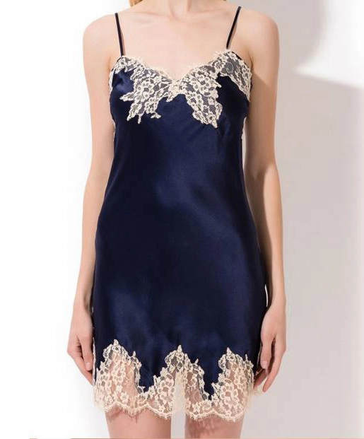 Nuisette en soie Lise Charmel de la collection Splendeur Soie. Vous allez adorer enfiler cette nuisette luxe tant la sensation sur votre peau sera pareille à une caresse et vous procurera un confort inégalable. Le décolleté et le bord inférieur y sont ornementés en toute élégance par des empiècements de dentelle de Calais floraux remarquables de raffinement. Côté pratique, deux fines bretelles se poseront délicatement sur vos épaules. Passez en mode princesse avec ce splendide article de lingerie en soie !