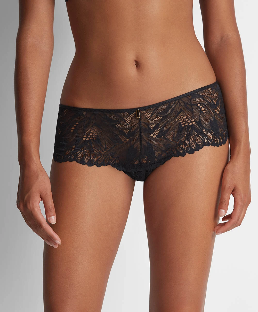 Avec sa forme tendance qui allie séduction et effet emboitant, ce shorty flowermania sublime la silhouette avec ses hanches en dentelle florale rafinnée et son tulle transparent laissant la peau se dévoiler tout en subtilité. Un sublime bijou doré sur le devant et au dos de la pièce ajoute cette touche sexy à ce dessous.