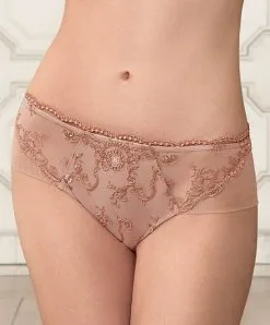 Shorty Bijou de Fleur Lise Charmel. Une pièce de lingerie haut de gamme en tulle enrichie par une broderie dont les motifs brillants s’inspirent des plus belles créations modes pour un effet luxe éclatant. On craque pour ce shorty Lise Charmel qui se pare de nombreuses finitions : galon de résille à la taille, dos clean cut et broderie scintillante sur une base chair pour créer l’illusion de ne rien porter.