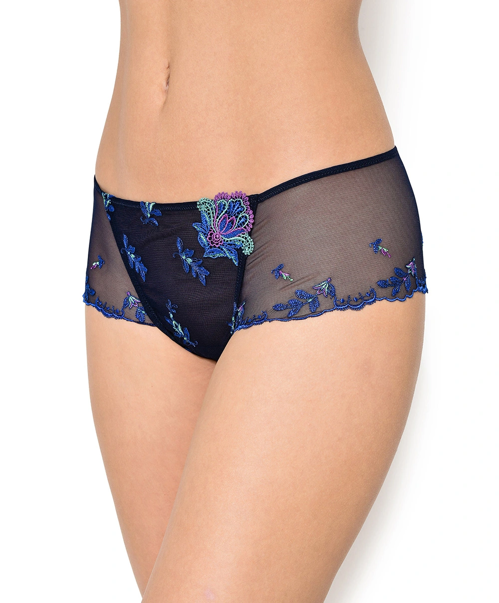 Shorty collection Forêt lumière de la marque de lingerie Lise Charmel. Un dessous haut de gamme légèrement emboitant qui ose se parer de couleurs chatoyantes pour vous mettre en lumière. Le savoir faire unique employé dans la confection de cette pièce et de toute beauté afin de nous offrir une grande richesse visuelle mais aussi un porter confort pour une application parfaite sur la peau. Seul la maison Lise Charmel est capable de nous offrir un tel résultat. Le tulle extensible multibrin très doux et très léger utilisé s’associe à une broderie florale multicolore refletant la nature sauvage et majestueuse.