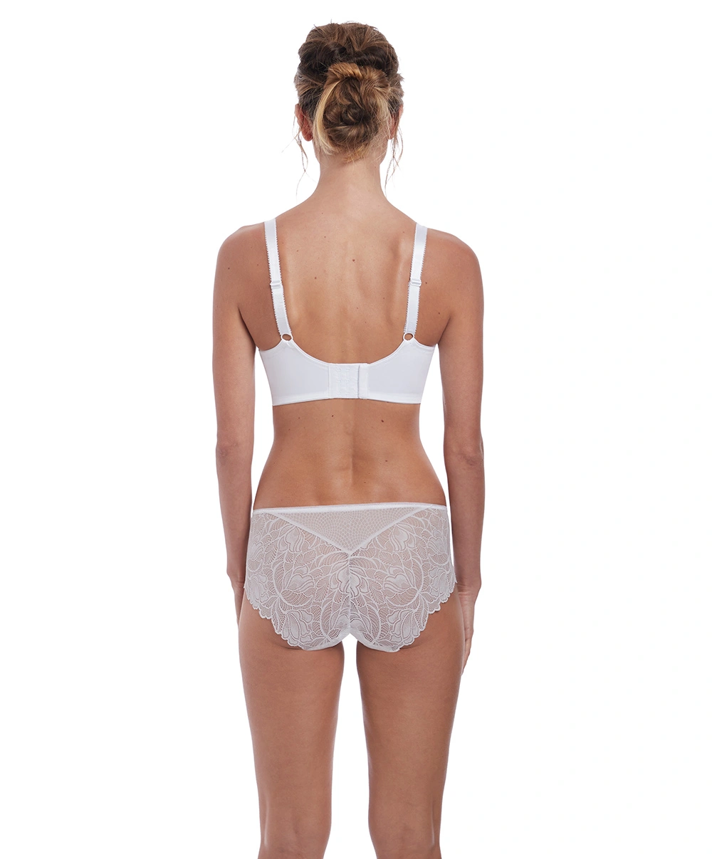 La collection lingerie permanente Memoir de chez Fantasie : De retour cette saison avec un nouveau coloris blanc permanent, la ligne Memoir de chez Fantasie vous enchantera avec son visuel sophistiqué mélangeant aspect crochet et douce dentelle géométrique aux reflets brillants évocateurs du galuchat, ce cuir exceptionnel prisé des grandes maisons de luxe. Les sous-vêtements blancs de cette collection feront d’excellentes parures de lingerie quotidienne à la fois confortables et élégantes.