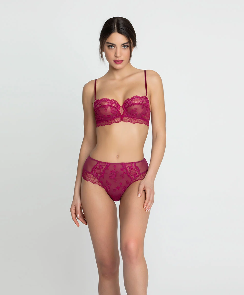 La collection de lingerie fine Sublime en Dentelle par Lise Charmel : cette ligne de lingerie dentelle très complète revient cette saison en coloris fuchsia et toujours son mariage sophistiqué de broderies, de crêpes de soie, de laine et de dentelle française labellisée Calais-Caudry… Soutiens-gorge sexy aux coupes variées offrant de magnifique décolletés, culottes aux formes audacieuses et aux jeux de transparence dévastateurs, porte-jarretelles assortis… Autant d’éléments qui font de cette superbe ligne de lingerie de charme un must-have dont les parures laisseront votre partenaire bouche bée…