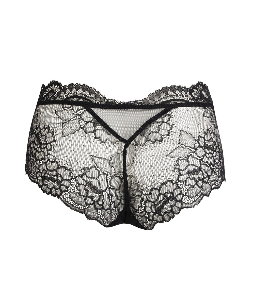 -Ce shorty sexy est travaillé toute en transparence avec une dentelle de Calais ajourée florale d’un raffinement et d’une beauté sans pareils.