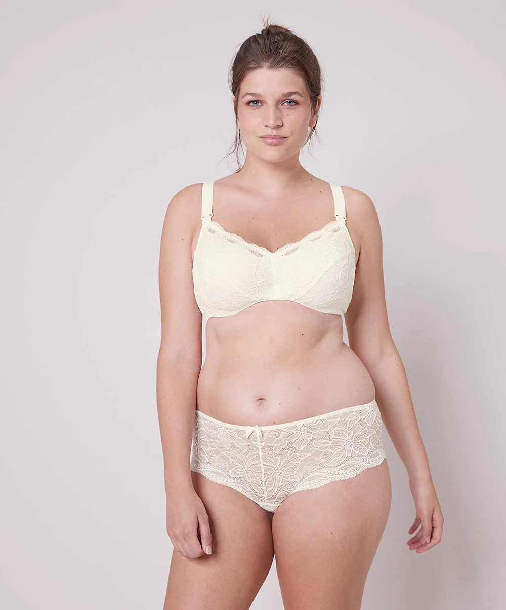Soutien-gorge d’allaitement armatures amovibles grande taille en coton Simone Pérèle de la ligne de lingerie permanente Eden, coloris naturel (=ivoire).