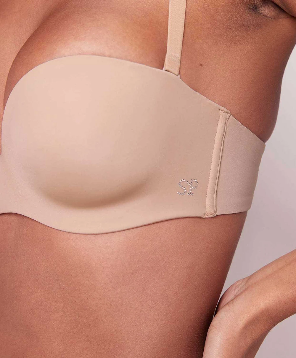 Matières et détails : Microfibre « lotion touch » d’une finesse incroyable pour un effet seconde peau. Maille en finition fourreau pour une pureté des lignes et éviter tout contact des élastiques sur la peau. Une attention particulière est accordée aux détails : la signature de la marque chic et couture avec le monogramme SP en clous à facettes, les agrafages en microfibre renforcés pour un effet molletonné qui vous offre un grand confort et les bretelles clips permettant une totale invisibilité grâce à ses 8 positions.