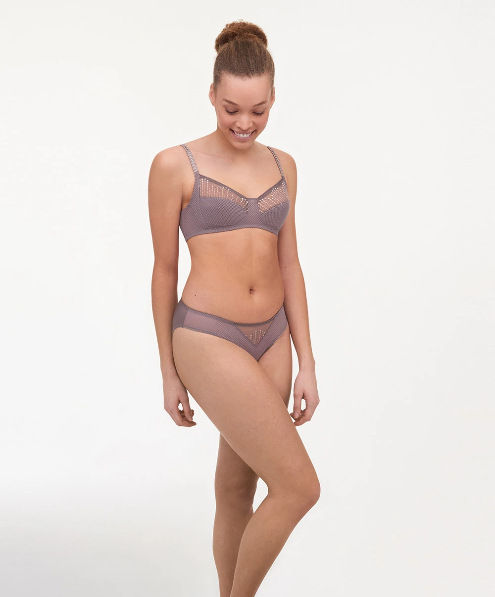 -Les finitions de ce slip Chantelle offrent des broderies graphiques en relief sur un triangle de tulle devant, dont certaines ont été réalisées à partir d’un fil argenté ou nacré pour une sophistication toute particulière.