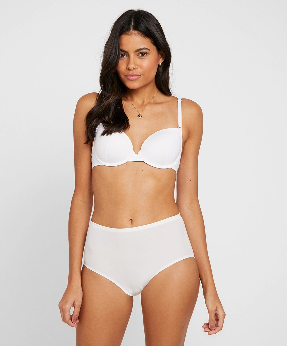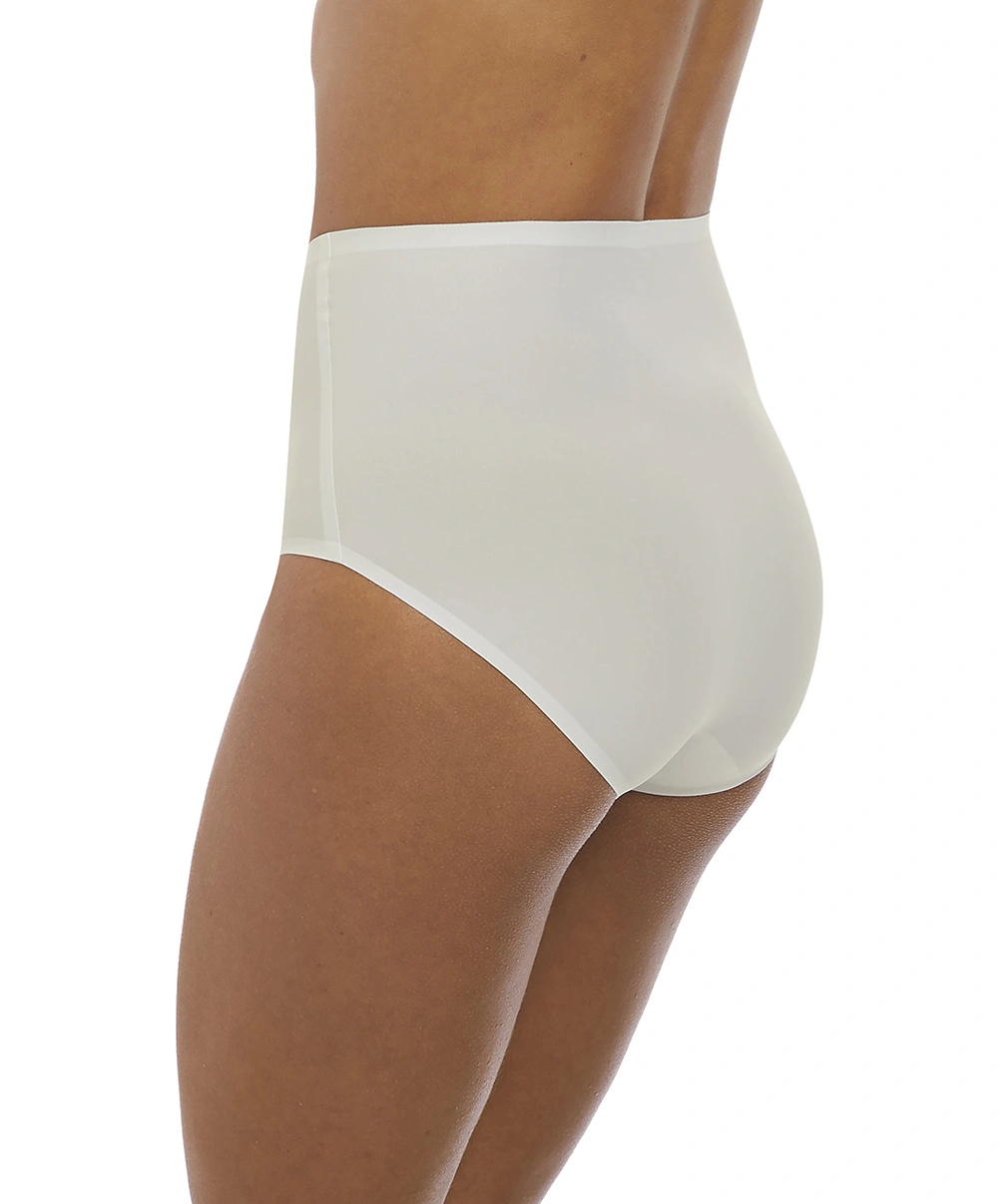 Slip haut invisible stretch collection Smoothease de chez Fantasie lingerie. Cette culotte haute invisible offre une coupe emboitante qui enveloppera bien vos fesses et gommera même les petits défauts de votre ventre en le recouvrant délicatement/ La maille nerveuse extensible dont ce dessous est confectionné épousera vos courbes comme une seconde peau. Ce slip taille haute sans coutures offre des finitions à bords francs (dites clean cut) extra-plates pour éviter les lignes de démarcation disgracieuses sous vos vêtements. Ce sous-vêtment basique s’associera à merveille avec le soutien-gorge de votre choix pour vous faire une parure de lingerie quotidienne mais pas que !
