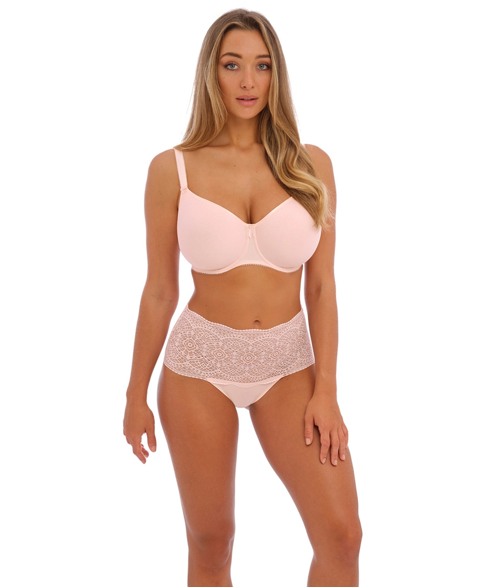 Slip haut invisible stretch en dentelle collection Lace Ease de chez Fantasie lingerie, coloris blush (=rose poudré).