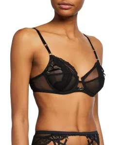 C’est la nouveauté coup de coeur des conseillères Erika ! L’énorme effort de créativité graphique font de ce sous-vêtement un must have de la nouvelle saison. Une alliance parfaite en la délicatesse dentelle de Calais et l’érotisme d’un tulle doux et stretch. Raffinée, sexy et luxueux, on craque totalement pour ce soutien-gorge lise charmel au porter exceptionnel. Les bonnets doublés couvrant et emboitant la poitrine parfaitement et le dos cheminée en tulle tonique permettent d’avoir une excellente tenue et une poitrine bien centrée. Résolument érotique avec ses liens stretchs effet bondage très sexy sur le côtés des bonnets, il laissera dévoiler la peau discrètement et sensuellement. La finesse des différents tissus et le savoir faire d’assemblage de la marque font que l’on est en présence d’un dessous extrêmement haut de gamme : coutures plates, jeux de découpes, finesse de la dentelle, bouclerie dorée, liens virevoltants… Une ambiance féerique !