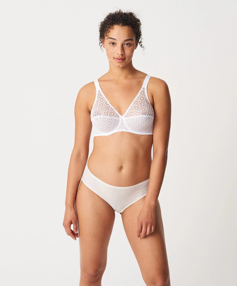 Coloris : Blanc (010) : un coloris intemporel immaculé tout simplement parfait pour une lingerie de tous les jours classe et sobrement élégante.