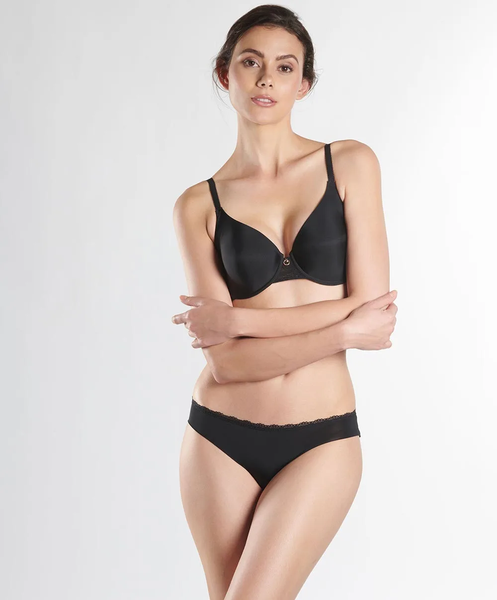 Soutien-gorge balconnet moulé collection lingerie Lysessence coloris noir de chez Aubade Paris.