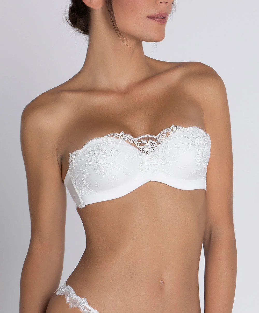 Soutien-gorge bandeau bretelles amovibles ivoire collection de lingerie nuptiale Source Beauté par Lise Charmel.