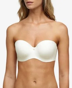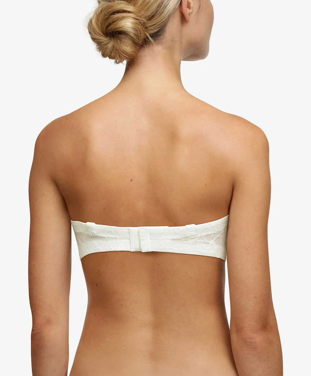 Soutien-gorge bandeau coque de la marque de lingerie Chantelle, collection True Lace, coloris milk (=nacre).