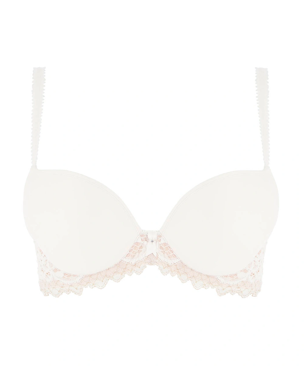 Soutien-gorge coque collection Lace Essentiel de chez Wacoal. Ce superbe soutien-gorge moulé offre des bonnets lisses pour un galbe naturel et une invisibilité accrue sous les vêtements. Il vous fera un décolleté échancré très glamour avec son strass piqué sur un ruban au séparateur. La basque arbore une superbe dentelle de coton façon guipure pour une allure romantique à souhait.Côté pratique : les bretelles sont convertibles et réglables et peuvent se porter sur les épaules de manière traditionnelle ou égalmement en position dos croisé selon la tenue que vous portez. N’hésitez plus pour vous procurer cdde superbe soutien-gorge coque Wacoal !