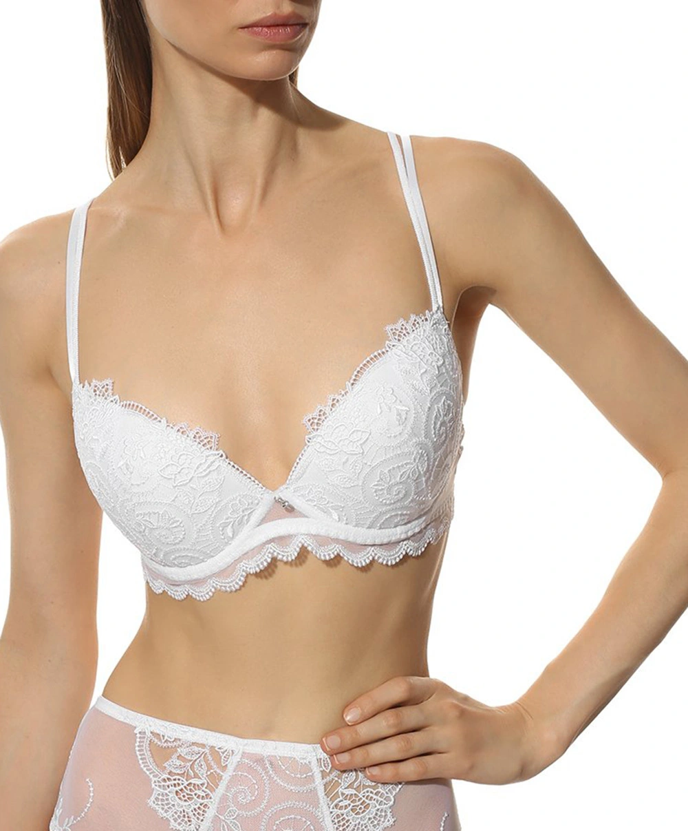 Soutien-gorge coque de la collection de lingerie blanche Crystal Poésie par Lise Charmel.