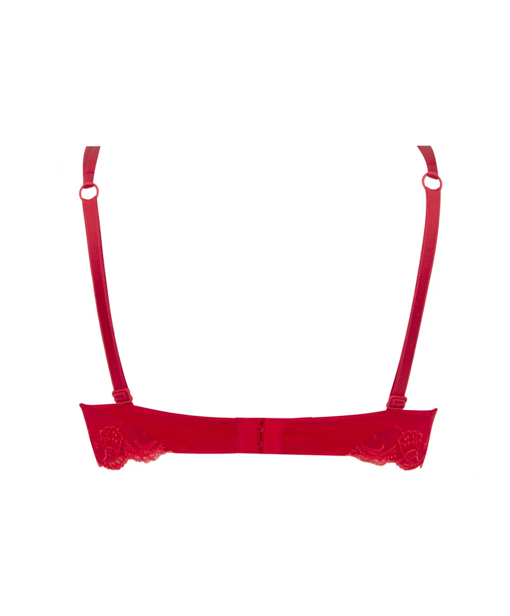 Soutien-gorge coque en soie Lise Charmel collection Splendeur Soie, coloris rouge.