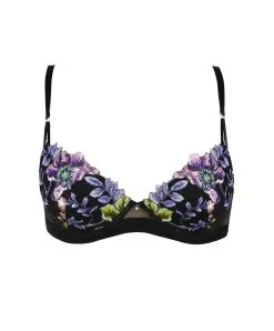 Soutien-gorge coque Lise Charmel collection Flora Aura, coloris aura pastel (broderie multicolore pastel sur fond noir).