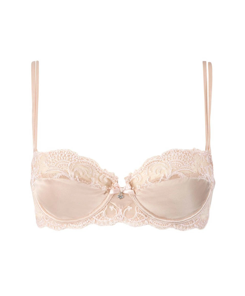 Soutien-gorge corbeille en soie de la collection Splendeur soie de la marque de lingerie Lise charmel. Une pièce à la forme pigeonnante galbant la poitrine pour un bel effet bien rond. Le bas bonnets en satin contraste avec le décolleté en tulle brodé qui joue de transparence pour plus de séduction. Le graphisme de la broderie qui compose ce soutien-gorge corbeille lise charmel s’inspire des fines gravures sur verres. Une des plus envoutantes créations de la saison avec ces matières nobles et ses finitions parfaites.