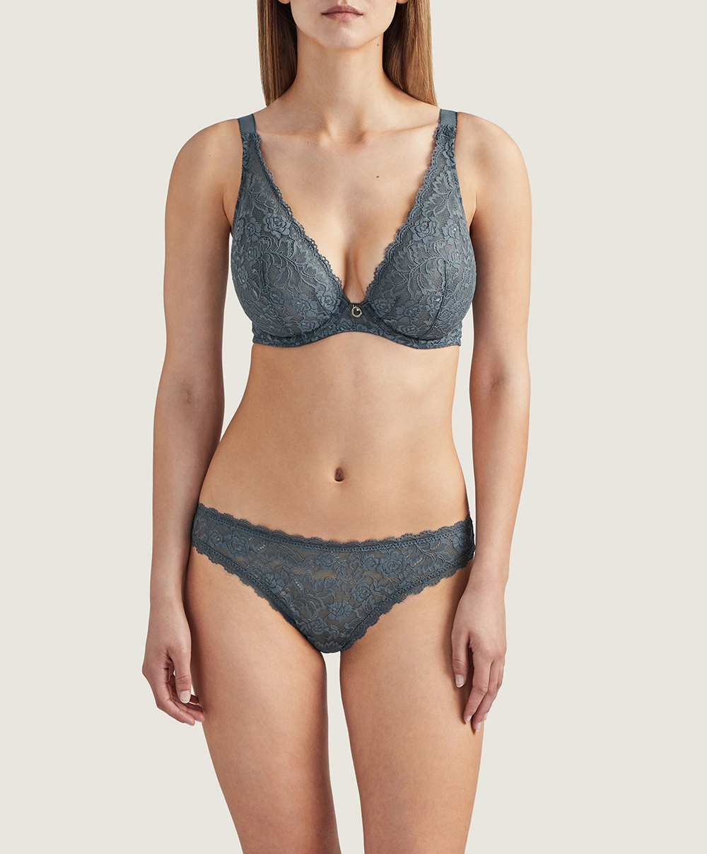 Soutien-gorge grande taille triangle plunge de la collection lingerie gris ardoise Rosessence par Aubade Paris.