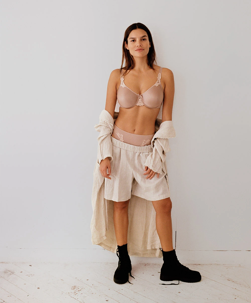 Soutien-gorge moulé enveloppant à armatures collection Hedona de la marque de lingerie Chantelle, coloris peau.