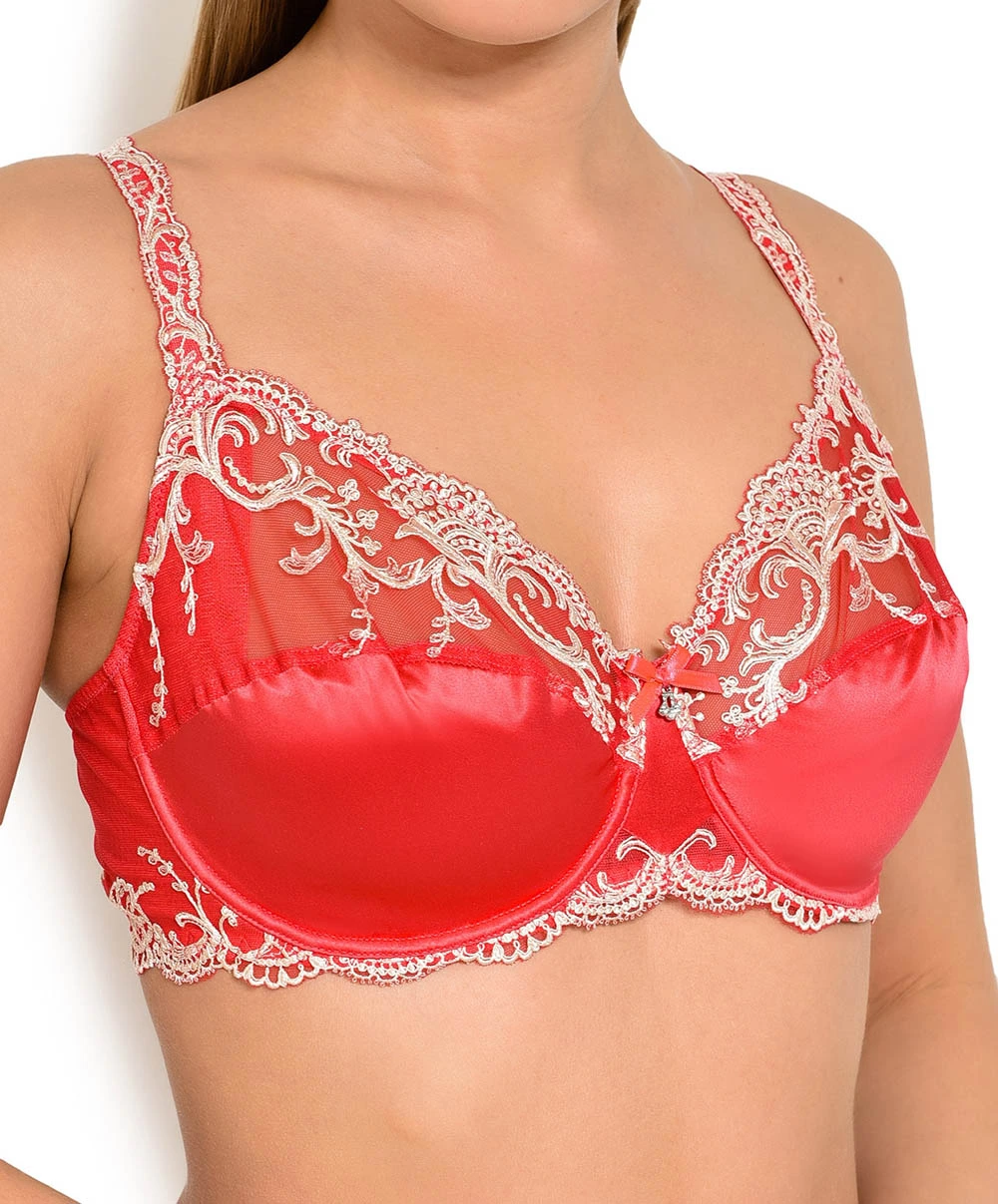 Soutien-gorge rouge en soie couvrant collection Splendeur soie de la marque Lise Charmel coloris Splendeur Santal.