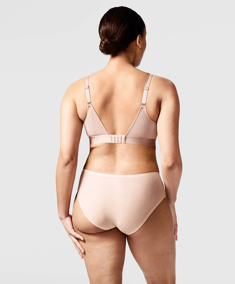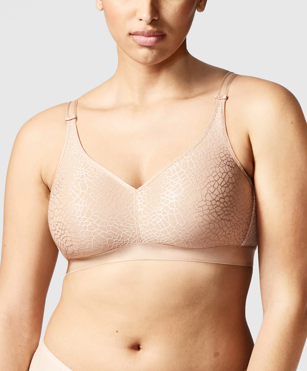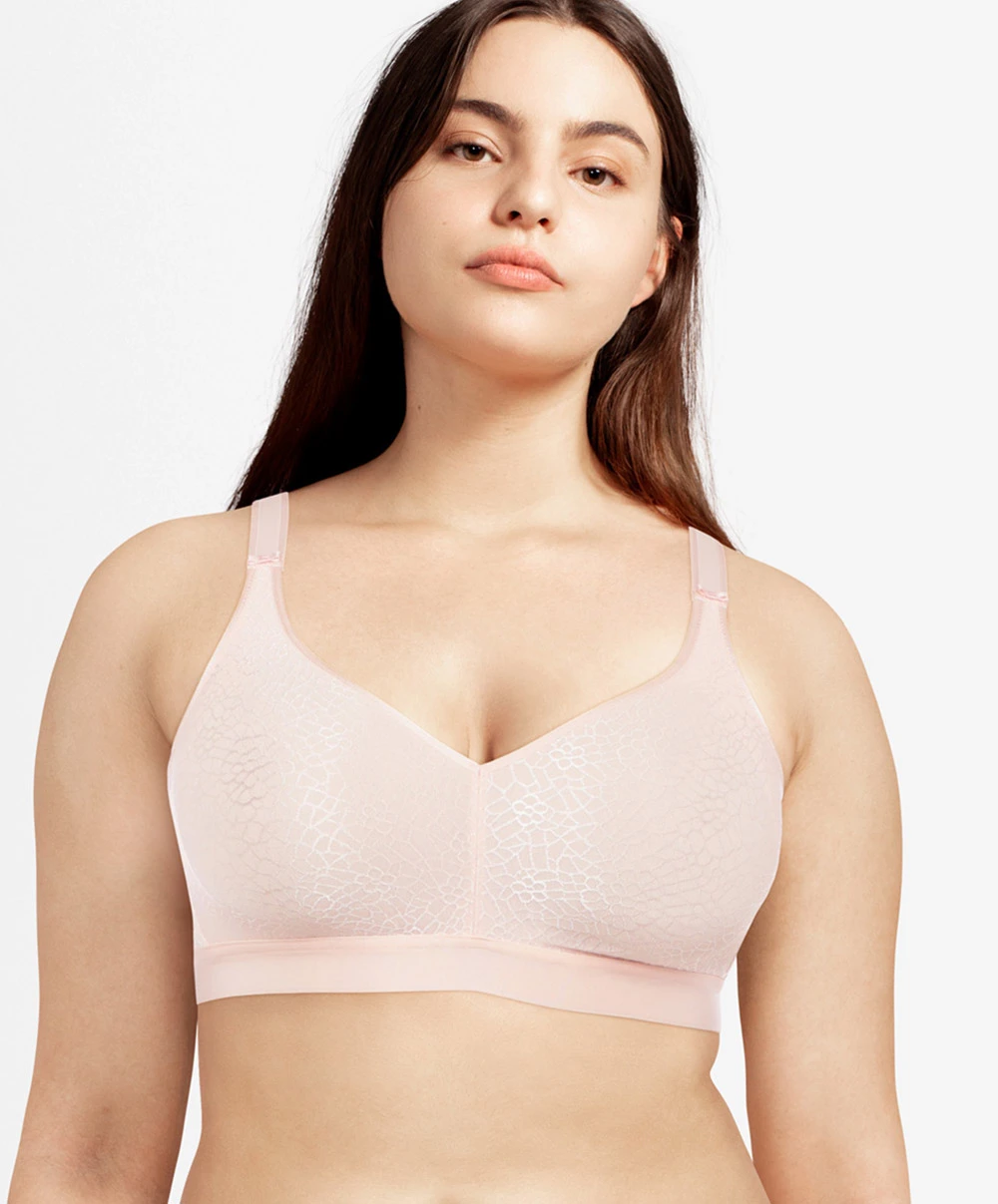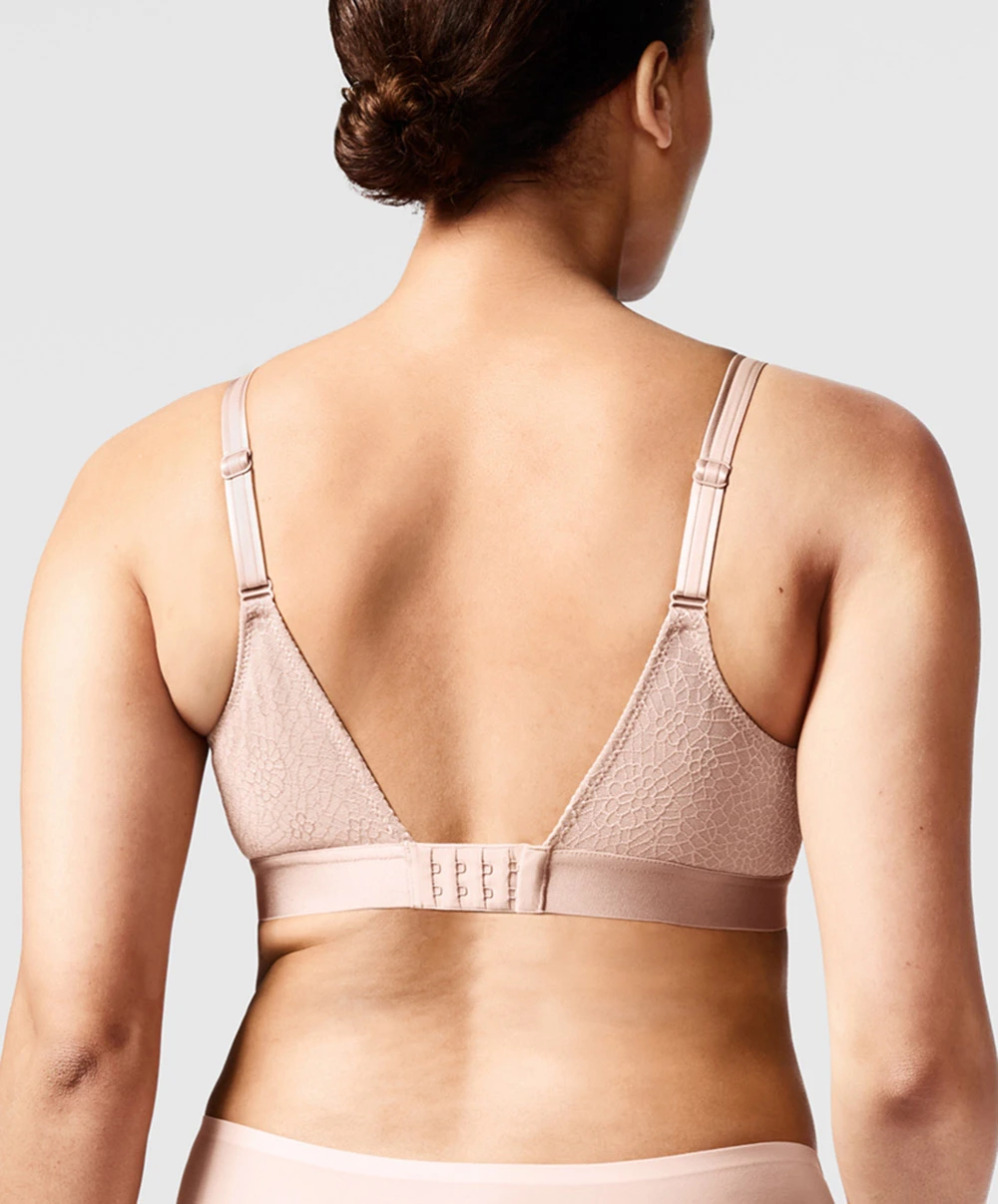 Soutien-gorge sans armatures collection lingerie invisible grande taille C Magnifique de la marque de lingerie Chantelle, coloris rose dragée.