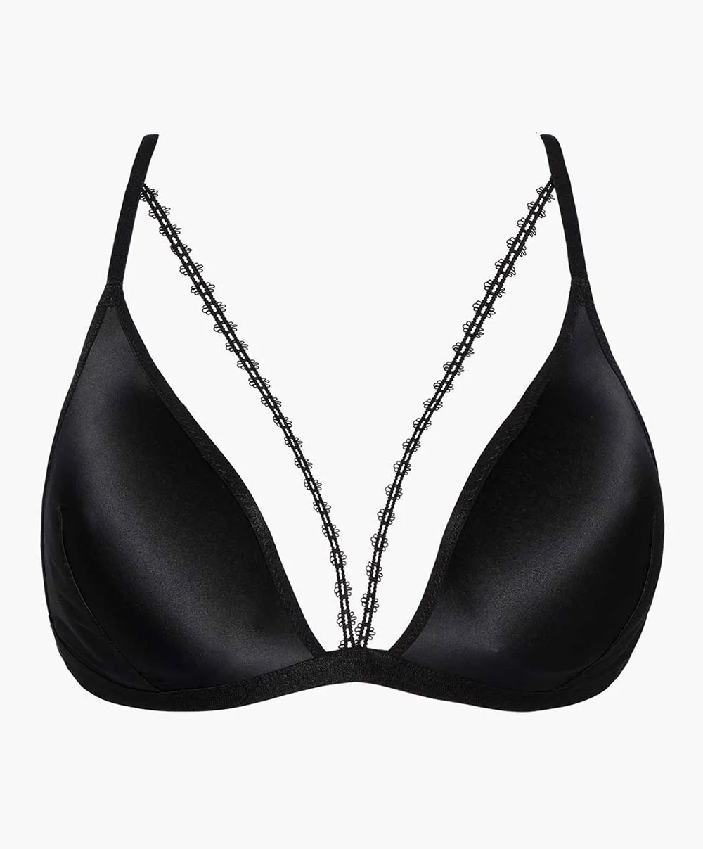 -Ce soutien-gorge triangle offre une coupe très minimaliste avec ses bonnets peu couvrants à coutures verticales, son décolleté très plongeant ravageur et son design rétro-chic qui en font un dessous chic résolument tourné vers la séduction.