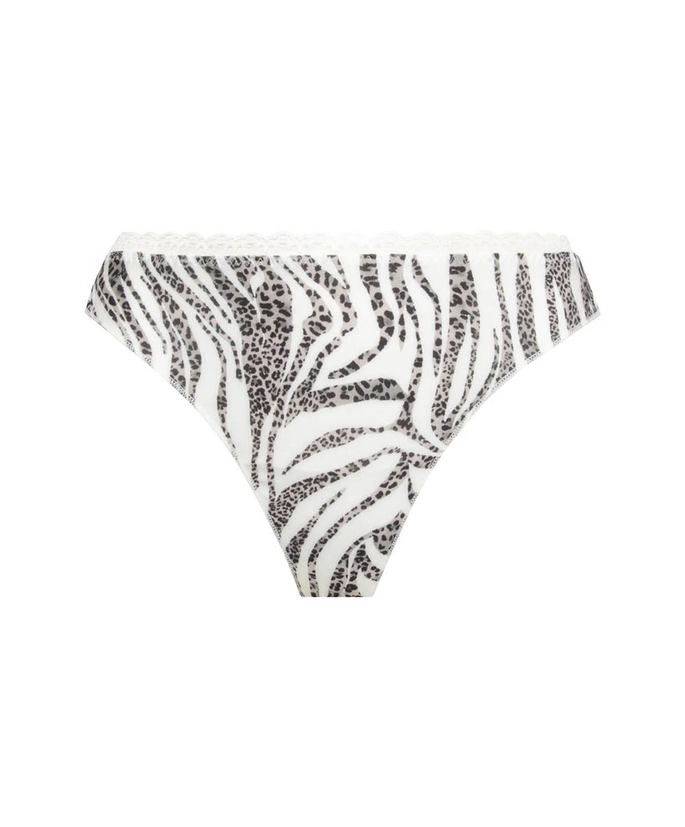 – Une ligne audacieuse et inédite qui joue la carte de la séduction avec son imprimé léopard totalement revisité. Des zébrures blanches se superposent sur l’imprimé fauve rendant l’ensemble des dessous de cette lingerie très sexy.