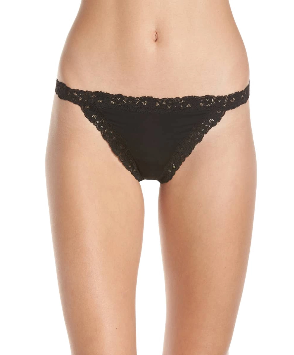String modal de la collection Insta Ready par B.tempt’d. Ce string incarne à la fois une lingerie sexy mais aussi incroyablement confortable. Confectionné en coton modal ultra-doux, ce tanga B.tempt’d assure un confort ultime pour un usage quotidien le tout réuni dans un écrin des plus glamours. De jolies festons en dentelle ornent les contours de ce dessous chic en vous procurant une allure très féminine. Les bordures dentelées latérales ont pour effet visuel d’allonger vos jambes et évite que le string ne roule. La coupe très dégagée au dos qui révèle vos fesses de manière très suggestive vous assure une invisibilité parfaite sous vos tenues (même les plus moulantes) et vous garantissent un sex-appeal décuplé. Associez ce dessous sexy au soutien-gorge plongeant ou à la brassière de la même collection et vous obtiendrez une superbe parure lingerie de charme.