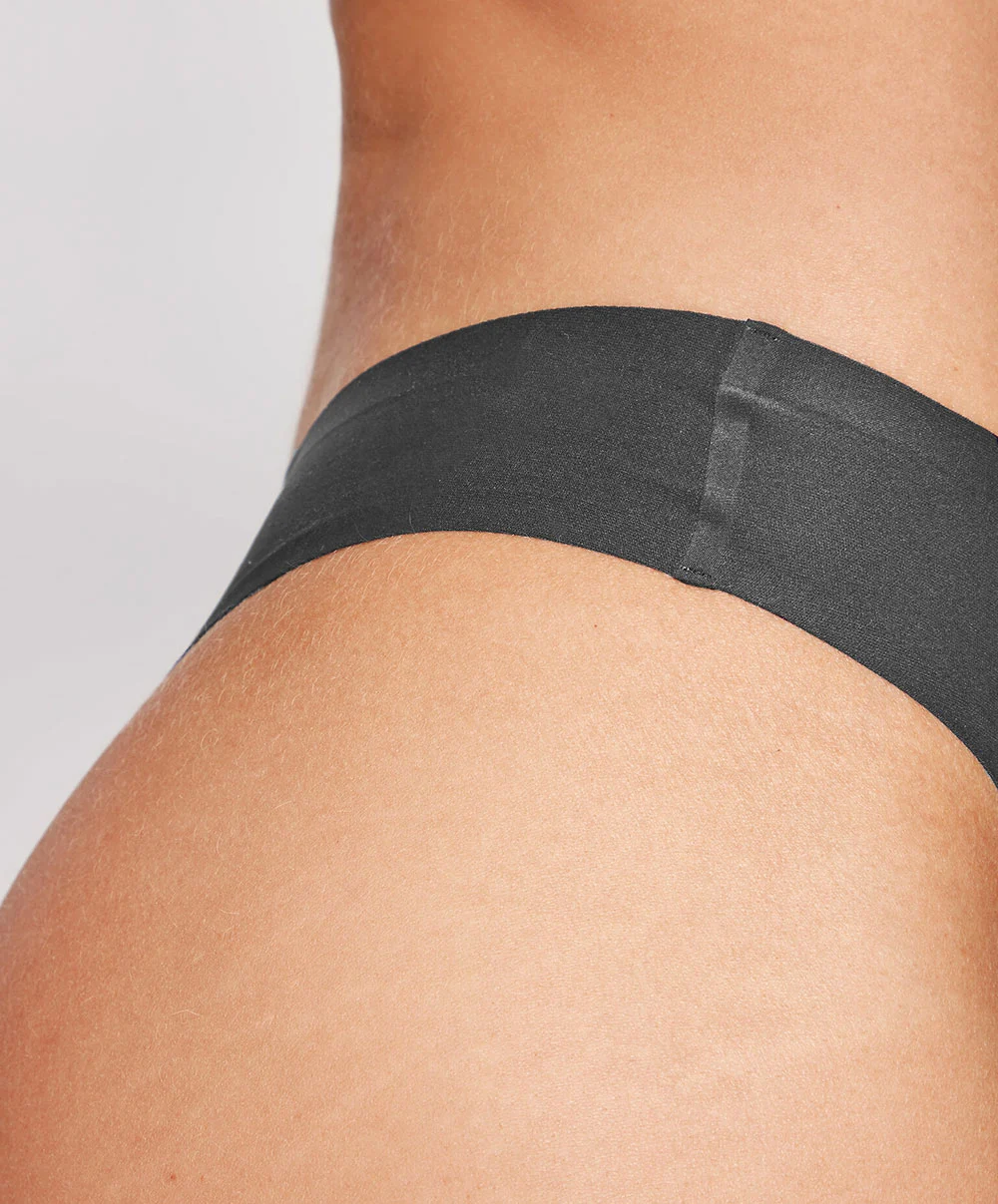 -Ce string basique offre relativement peu de tissu avec une échancrure prononcée devant (flatteuse pour vos jambes), des côtés plutôt plutôt larges et un dos très dégagé qui révèle vos fesses de manière audacieuse. Sa coupe minimaliste vous offrira donc une discrétion maximale sous tous vos vêtements tandis que son design ultra-plat ne laissera aucune place aux lignes de démarcation disgracieuses sous vos tenues.