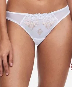 -Les finitions de ce string Chantelle offrent de superbes broderies baroques ainsi qu’un joli noeud en organza à la ceinture qui participent au raffinement extrême de ce dessous chic.
